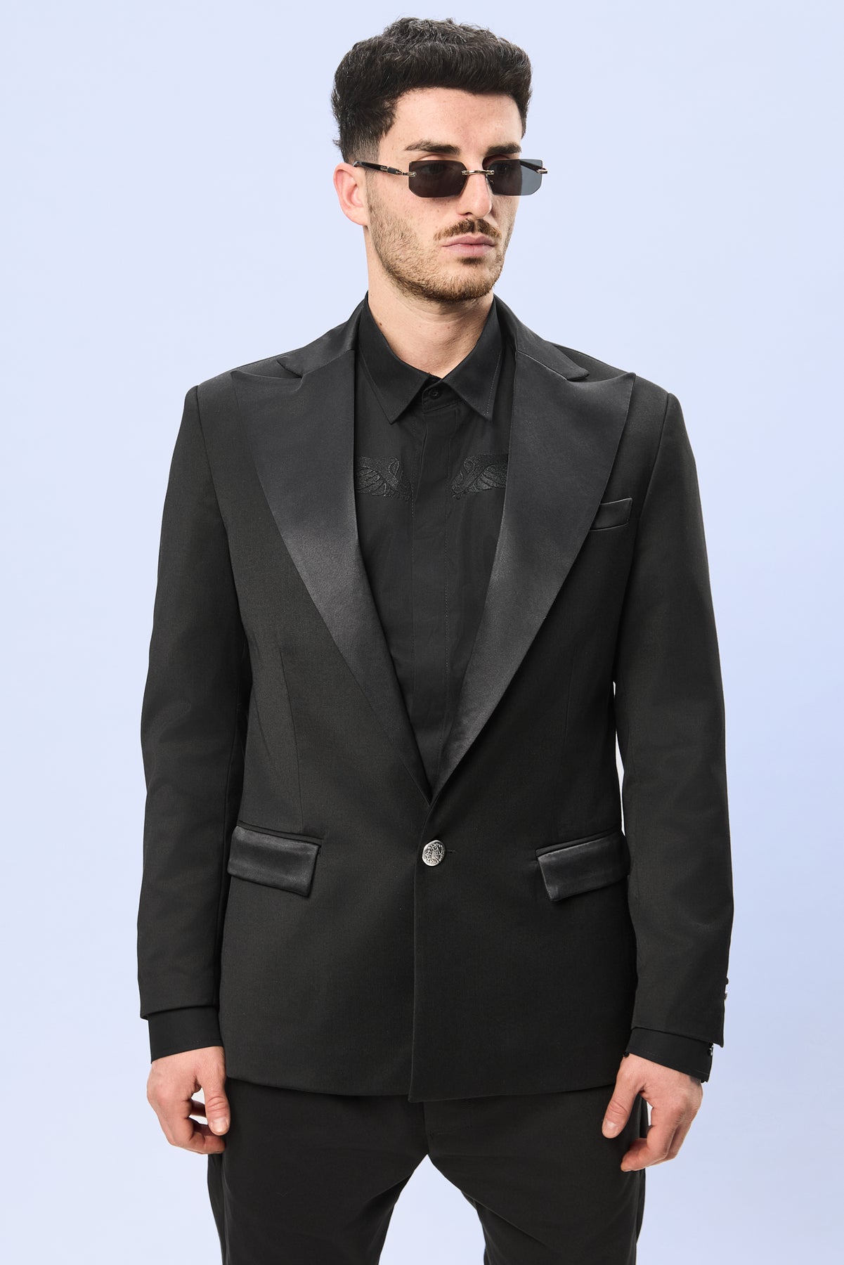 Sacoul THE AUTOHORITY este definit de liniile curate si de luxul discret al detaliilor impecabile. Din stofa premium cu textura profunda si cadere naturala, sacoul impune printr-o eleganta masculina sigura, unde fiecare element este gandit pentru echilibru si prezenta. Reverele late din tafta de matase adauga o nota sofisticata, creand un contrast subtil de textura si lumina care evidentiaza rafinamentul piesei.