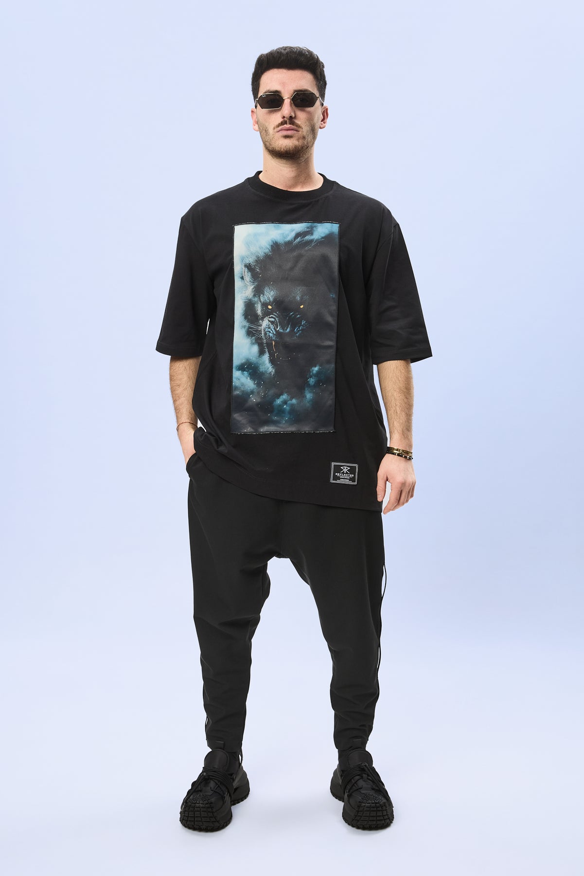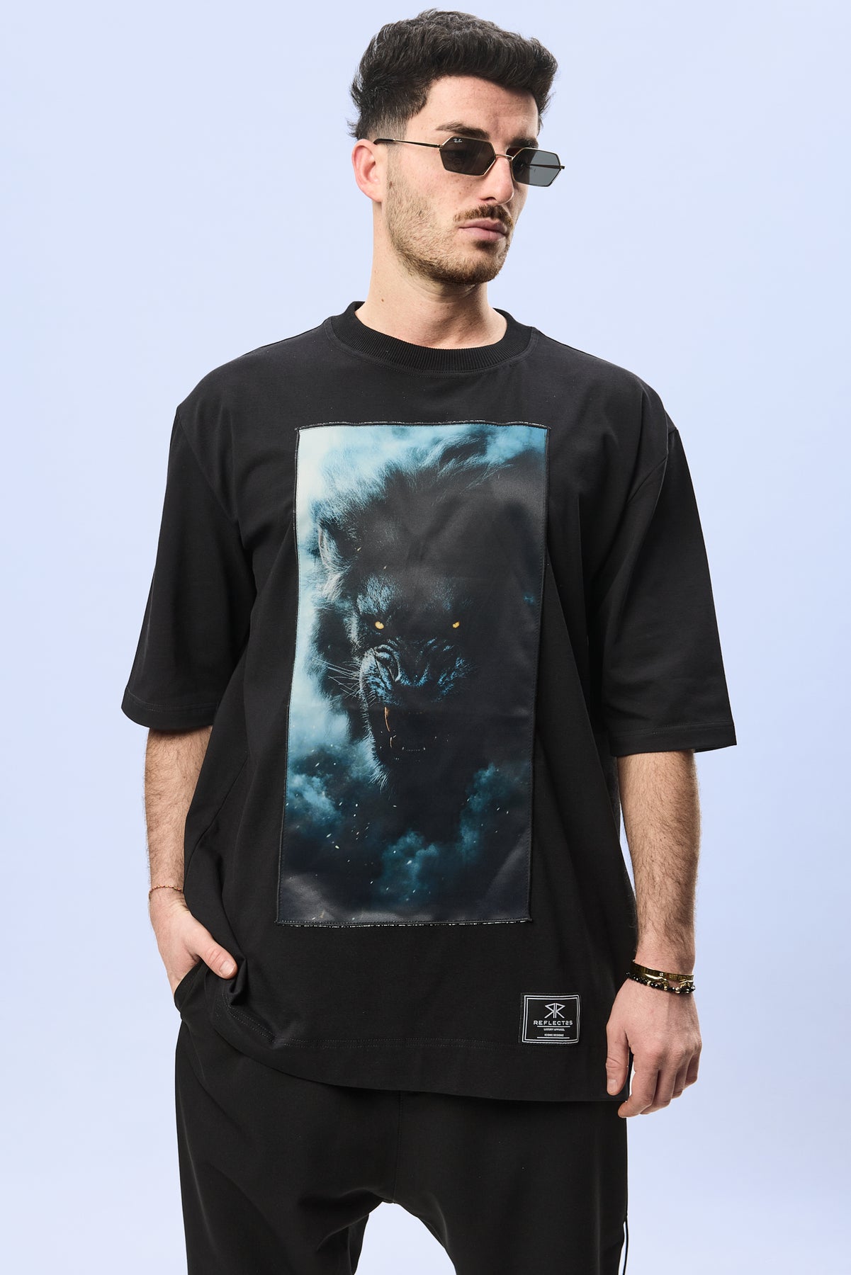 THE LION este un tricou autentic, cu design unic si personalitate, creat pentru outfituri moderne in care stilul urban si atitudinea devin o forma de expresie. Este realizat din bumbac subtire, 100% natural iar elementul central al designului este printul artistic amplu reprezentand silueta intensa a unui leu, simbol al fortei si al caracterului. Imprimeul este realizat pe satin folosind tehnologie laser de ultima generatie.